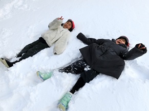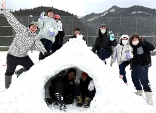 元気に運動場に出て、雪合戦をしたり、かまくらや雪だるまを作ったりと、久々の雪の