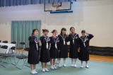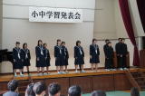 | 小中学習発表会 11月15日(土)に小中学習発表会が開催されました。 中学校の部では、代表生徒の人権作文および生活作文の発表のほか、2班に分かれての総合学習の発表、そして全生徒による合唱の発表を行いました。 総合学習の発表では、各班それぞれ学んできた内容をもとに、スライドも用いながらの工夫を凝らした劇を発表しました。そして、合唱の発表では、少ない人数ではありますが、二部合唱で2曲発表しました。 練習の成果もあり、本番では全員が堂々と舞台に立ち、多くの方に拍手をしていただける良い発表をすることができました。 |