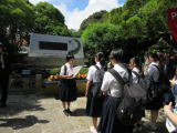 | 3年生 修学旅行 5月18日(日)から20日(火)まで曽爾小中学校9年生と合同で沖縄に修学旅行に行ってきました。今年は天気も良く、無事に沖縄に到着することができました。 1日目は、平和学習に関わって、ひめゆりの塔、平和祈念資料館、糸数アブチラガマを訪れました。それぞれの資料館で真剣な表情で展示を見て、考える皆さんの姿がとても印象に残りました。特に糸数アブチラガマでは実際にその場所で生活していた人々がいたことを想像しながら、ガイドの方のお話を聞くことができたのではないかと思います。 2日目は、シュノーケリング体験と、エコツアーに参加しました。心配されていた天候も見事に良くなり、沖縄の海の美しい珊瑚礁と魚の様子を楽しむことができました。エコツアーでは普段の生活ではみることのできないような亜熱帯の動植物を見ることができました。 午後からは琉球村に行きました。琉球時代の文化や生活の様子を見て回り、学習することができました。その後、道の駅かでなへ出発しました。間近に飛び交う戦闘機やヘリコプターを見て基地の様子を肌で感じ、展示を通して、米軍基地の問題について学びました。この見学を通して、新しく学ぶことも多かったのではないか思います。最後に向かった万座毛では、独特の地形と美しい海の景色を楽しむことが出来ました。 3日目は、午前中に首里城に行き、沖縄国際通りに移動して買い物をしました。首里城では、2019年に焼失する前の本殿の様子や、焼けずに残った部分の展示、実際に修復の作業をしている様子等、例年とはちがう様子の首里城を見学することができました。ぜひ、修復された後の首里城にも行ってみたいですね。午後からは班別に分かれて事前の綿密な計画に基づいて行動しました。先生たちが見ていない中、羽を伸ばすことができた人もいたのではないでしょうか?(笑) 天候にも恵まれ、学びもあり、楽しみもあり、曽爾小中学校の9年生の皆さんとの絆を深める事もできた、充実した修学旅行となりました。皆さんにとっても心に残る修学旅行になっているといいなと思います。 |